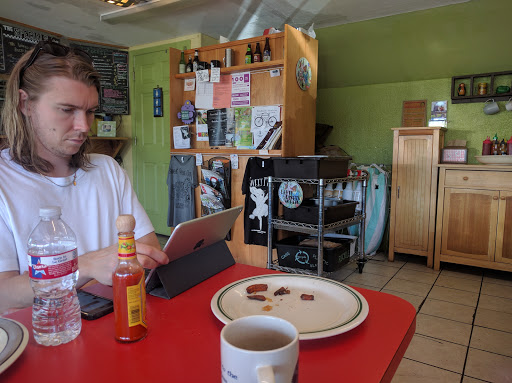 This place is great. great food, great atmosphere, great service, and great value. (that conehanded weirdo in the parking lot likes to lick the tires on my car, but i dont think hes actually affiliated with the restaurant and hes harmless enough). my recommendation is: dont come here if you dont like food. especially really good food. the tempeh reuben=110%. they have a fun, relaxed atmosphere and are fast, cheap, and delicious; also, my car tires always look good after I eat there.