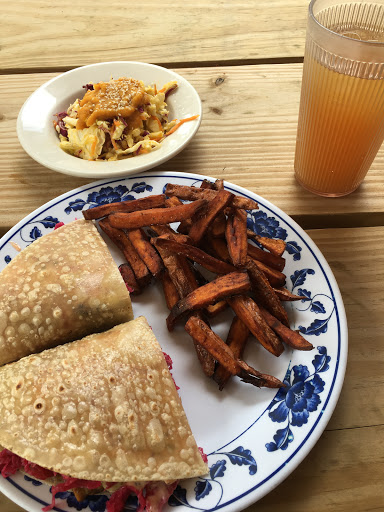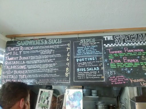 Love their tempeh reuben. It is absolutely amazing. Cost is a little higher and for less food than we are usually comfortable spending, but still absolutely worth a visit, especially for vegans, since everything on the menu is vegan! Part of why they tend toward higher prices for less is because of their locally grown efforts. Be sure to bring a to-go box with you, because they do not supply free to-go boxes.