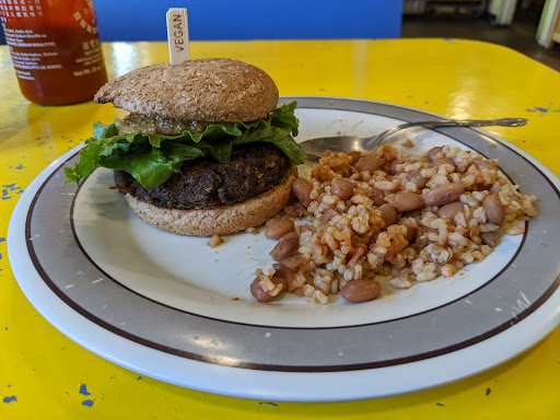 The service here sucks and the food is mediocre at best, even for vegan food; you get the choice of imitation burger or mexican. Yawn. Youll also be nickled and dimed harder than youve ever been in your life as well, 35 cents for a to-go box? Your money would be better spent literally anywhere else that offers something vegan, and the only reason this isnt one star is because I have to give them some credit for being a vegan restaurant.
