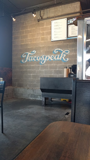 Tacospeak is a really cool place with absolutely delicious tacos. The thing that really stands out to me is the quality of the fresh tortillas all the tacos are served on. They are clearly just rolled out in the kitchen and griddled shortly before you receive your taco. The fillings themselves are flavorful and well balanced. The chips you get with the guacamole, queso, or salsa are always fresh and hot and so good. The soda fountain has delicious sodas made with sugar, not high fructose corn syrup. Things to improve: the guac recipe needs a little tweaking. I think it needs more tang and maybe more red onions :-)