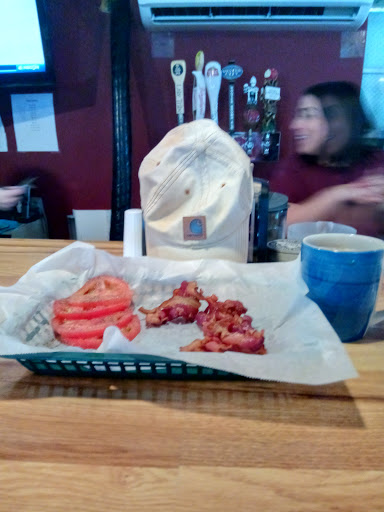 Went the morning after a football game in town around 11 AM. The place was packed. Youd think they had never seen anything like this before. Waited an hour to get seated. Another 30 minutes to get our order taken. And finally another hour to get our food. Needless to say, this gave the staff a good 2.5 hours to provide an awful experience. Our waitress was completely inept and rude. I get the whole "Im a total hipster and Im too cool for you" persona, but it really doesnt work in an industry where the whole point is to kiss the customers rear end. I was lucky to get one refill of water out of her during the whole time. My burger was $9...and it didnt even come with lettuce and tomatoes...seriously? And while it was coined a "bbq burger" it didnt come with bbq sauce, and the waitress tried to charge me when I asked for some. I understand this is a locally owned joint, but why do they feel the need to rob you for every little thing on the menu? There was more than a enough business there to eliminate that excuse. I had asked for the red peppers included on my burger to be placed on the side...instead I got no red peppers at all, and was charged an extra dollar for this. Worst thing is, I left feeling completely unsatisfied regarding my appetite, just sick from all the grease. For some reason this is a really popular and unique college joint, but I just dont understand the appeal.