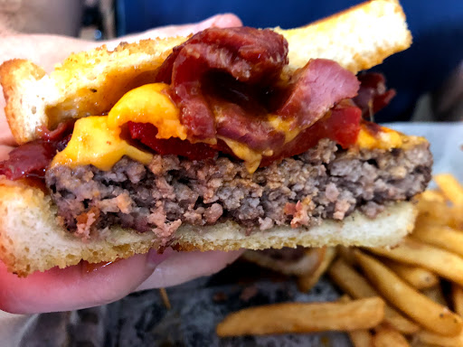 Creative menu - and, to my knowledge, one of the first (if not THE first) boutique burger joints in town. Broad range of burger configurations from which to choose - AND - theyll cook the burger to your liking (no amateur minimum levels). Indoor and outdoor seating. Outdoors, theres a great corn hole setup under the trees. Its nice as the speckled shade adds to the fun of the game. Front and back sections inside are a little cramped when this is a full house (which is frequent). Cook beers on tap and in bottles. Salad and chicken options are available- but this IS a burger joint after all. Visit the midtown caboose for the same level of burger quality (its run by the same guys (The Wells Brothers!)).