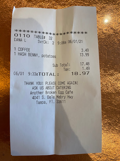 Holy shit. Okay, so, the wife and I came here for the first time for breakfast on a Monday morning. Place was packed -- and for good reason! So there are tons of breakfast places in Tampa, right? Pretty standard stuff. Nbd. But this place has 3 primary things in spades that annihilate the other places. Even Firstwatch which was our previous breakfast go-to. 1. Food is delicious. Period. Like, surprisingly good. Put it in your face and youre all like "...mmmMMMMDUDE..." every time you bite into it. And they give you plenty of it. 2. People are chill and friendly. Not like, weird-fake friendly, but just decent people. Theyll hang out and talk for a few and give you amazing food. 3. Clean. I HATE DIRTY PLACES TO EAT. Including the wait staff and restrooms -- all new and clean. High-five. Oh, PS, we ordered a table of food -- French toast, biscuits and gravy, eggs, bacon, sausages, and some lobster omlette shit, as well as 2 cups of coffee, orange juice, waters, and 1 goddamn fat cinnamon roll. $48.09 - and thats before the military discount. **TL;DR - Out of all the trendy, melinneal targeted brunch places in Tampa, this ones it.