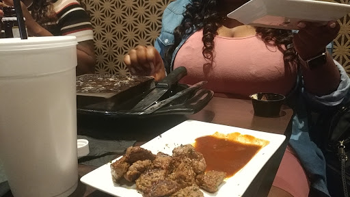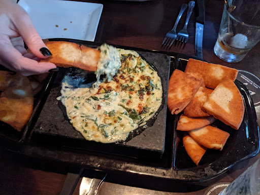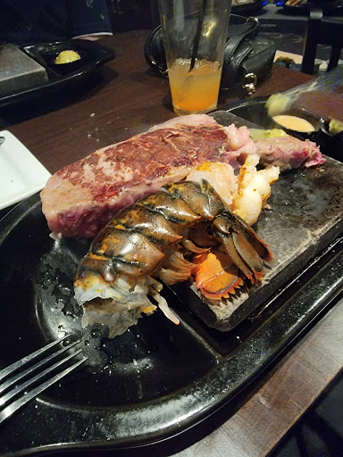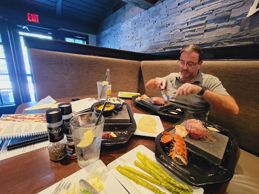 TLDR; Decent food but an expensive novelty for cooking your own meal; kitchy My wife, son and I decided to give them a try this past Friday evening. The decor is nice, a good size bar area and comfortable spacious seating indoors with a small outdoor area provided as well. We were seated pretty promptly for arriving at 7:30 on a Friday before Easter Sunday. The restaurant was full but not overcrowded at the time. We ordered the Dueling Pretzels appetizer and were not disappointed by the size of the portion; it was easily enough for a table of 4. The inner section, and the draw for the "Black Rock" experience is the center section of the menu which offers various Surf and Turf options which will be brought to your table on a 750 degree lava rock. Your server will ask how you like your meat prepared and then proceed to tell you how to slice the raw meat and how long to cook it on the searing hot stone in front of you. A novel approach to restaurant food preparation. If you are not handy in the kitchen, this may not be for you. If you are uneasy about how seafood is prepared, this is definitely not for you. There are traditionally prepared for you options including chicken, ribs, pasta and salads, as well as burgers and hot dogs. Our 8 year old son was underwhelmed with his burger and thought it lacked flavor; the MacDonalds bun it arrived on didnt promise anything greater initially. My wife ordered herself the Signature Kobe Burger medium rare and noted that it arrived medium, with no trace of pink to be found inside. She opted to eat it instead of sending it back and was also not impressed with the quality of the burger, noting that similar burgers at similar restaurants were less expensive and that many restaurants tasted a higher quality of beef, particularly for Kobe. I ordered the 9oz Sirloin with a 4oz Maine Lobster tail add-on (total: $29.98) from the signature experience portion of the menu. The presentation was pleasing and the cut of meat I thought was better than average. The Lobster tail I would have thought was 1/2 its weight. The waiter offered a quick tutorial on slicing and cooking the meat and seafood with times by desired preparedness. Being a home chef I was comfortable enough with preparing my own meal; a truly novel experience as you can feel the heat from the black rock on your plate and the nice sizzle and aroma of meat being seared, without flame, right in front of you. Wine was overpriced for the offering, with the average 6oz glass being equivalent to the cost of the bottle in a retail location. Murphy Goode Cabernet was $15 for 9oz glass where the bottle retails for $12; I always find this type of overpricing grossly distasteful. Having been a bartender in a 5 Star restaurant in a major metropolitan area I know that restaurants crawl on the profits of their bars the pricing should be commensurate with the offering. Overall the experience was fair and I would go with friends who wanted to try the experience, but I wouldnt frequent of my own volition.