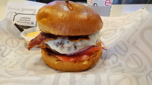 Tried it for the first time last week. Wasnt impressed. Burgers are meh, no where even close to as good as Five Guys. The patty is too thick so it doesnt cook right, the middle was cool-cold. And who in the world doesnt want pickles on a burger? But no...that was minus one star alone. And I dont dig places now that want you do 95% of the "work" ordering but yet still pressure you to tip. I mean how much do you tip for someone to walk food to your table? 2%? No clue and thats the point it makes no sense. And the new guy who just started working there made wise cracks in a creepy way the whole time to my daughter and I, apparently because wed never been there before. He made ordering even worse. The shakes were great however.