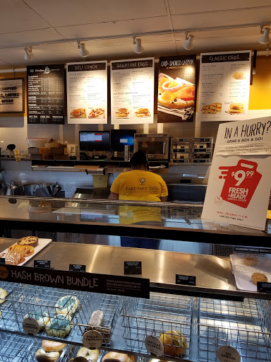 Burnt coffee. Ordered the bagel, lox, cream cheese, onion, tomato - was skimpy on cream cheese, pieces of onion ends of tomato, not full slices. Figured the first time may have been an isolated incident but it wasnt, happened two different visits. Pricey for skimpy amounts. Have been to other Einsteins and they give a good amount of cream cheese and full slices. This location keeps the eating area as cold as a freezer so you wont stay long, plus the tables and chairs are extremely close together so you are eating on top of each other. Go elsewhere.
