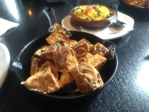Elegant restaurant with Spanish tapas. The portion sizes are small-medium (perhaps "normal" when you consider the average American portion size) and a dinner for two can run anywhere from $35-$70 dollars (that would probably include a wine, several tapas, and a dessert). They actually have their entire menu and the prices located on their website. Some of the tapas, like the beans and chorizo, are really cheap ($3 and DELICIOUS) with HUGE portions, while others will be a small bit of meat with some mushrooms and be a little pricier, for example. They serve paella in addition to cold and hot tapas (which is how the menu is divided). They also have a bar, and valé parking. The idea is to order several tapas, share, and have a little bit of everything. Its a nice, upscale restaurant with upscale prices, and the perfect place for a romantic dinner. The restaurant is located on the first floor of a nice multi-million dollar condo building and a little bit tricky to find because its not facing Bayshore Blvd, but rather, located on the back side (you have to turn onto Howard to see it). Superb food, service, and selection. The best Tampa has to offer! A friend visited the St. Pete location and said it was not as good due to "cheesy" Flamenco dancing.