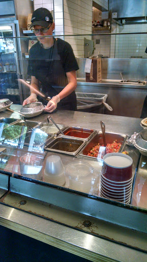 Went in around 6:30 on a Thursday night. The line moved quickly, but the employees were zombies and there was no communication between the 7 of them behind the counter. The girl in the middle poured the verde salsa all over my burrito (thinking it was the a burrito bowl for the gentleman in front of me) and looked at me with a blank expression when I told her. Steer clear, there are much better locations.