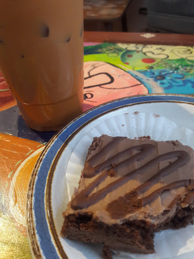 A beautiful place inside and out. Very friendly and helpful for new comers. I frequent this place often and Im not even a student. I love the ambience and chill vibes. I love their wide array of teas to choose from which are displayed where you order. So far Ive tried the Georgia Peach (iced & sweetened). Jasmine (hot & sweetened) which was very fragrant and delicious. And now Im having the Earl Grey with lavender leaves (hot w/cream & sugar) its perfection. Prices are comparable to Starbucks but its so much better here :) im glad I found this spot. They also offer free WiFi, books, & boardgames.