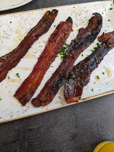 Meh. Ive been here twice, was underwhelmed both times. The first time I had eggs benedict. The hollandaise was very light and the glasses were dirty - mine had lipstick on it. The second time I had the millionaire bacon (good) and the Pecan roll waffle. The waffle was dry and didnt have that nice density you normally get in a Belgian waffle. Toppings were good. Service was great both times, but I did not feel my waffle and bacon (no sides included) were worth the $16 I paid pre-tip. Ill come back if coworkers all want to go, otherwise Ill pass. Theres better options in the area.