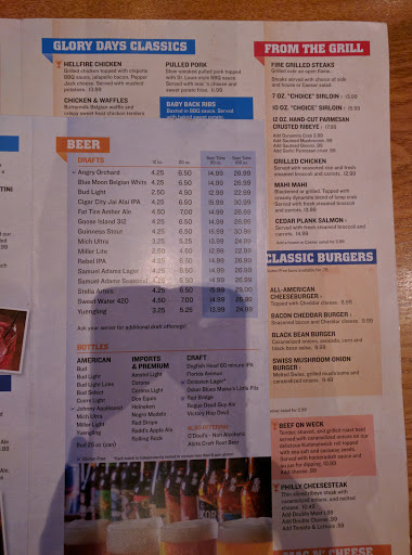 Never Going Back. I WAS a regular customer of Glory Days and unfortunately, i am also a very decent tipper.. never less than 20%. I would go there a minimum of 4X - 6X times a month. More during March Madness and Football season. I live up the street. Sunday i show up around 12:45 to try to catch the Giants football game. I gave my name (ROGER) and tell them i want to want the NY Giants game and the hostess she gives me a beeper. After about 1 hour (while less than 5 feet away at all times), i ask about my status. She says she has been calling my name (which is not JOSH)... BEEPER NEVER GOES OFF. I get it. Technology.. they couldnt hear me, blah blah blah. The proceed to sit me in a section that wasnt showing the game after i reminded them. After 5 minutes, the server comes back and says.. if you sit at this angle, you can see some of the game.. (50% obstructed FYI) ARE YOU SERIOUS???? I politely said.. Nope.. Not going to do that. I wont be ordering anything. Finished my 2nd beer and left after 5 more minutes. I am not looking for much. Maybe an apology.. Let me comp your 2 beers. Something... But i got nothing. As i sat there waiting to finish my beer, i saw the waitress talking to her manager about me. I was getting the feeling that they wanted to throw me out because it was busy and I wasnt ordering anything at the 4 top table. Needless to say. I couldnt believe it. Anyway. I gave them a 1 star because I couldnt give them any negative stars. Roger