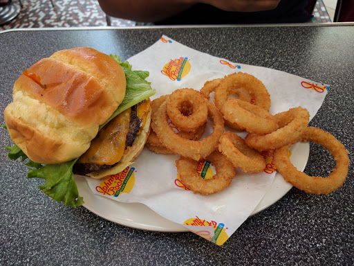 Hamburger was good onion rings OK, taste like store frozen, milk shakes are small for the price. The floor show is still good. OK for once in a while with kids.