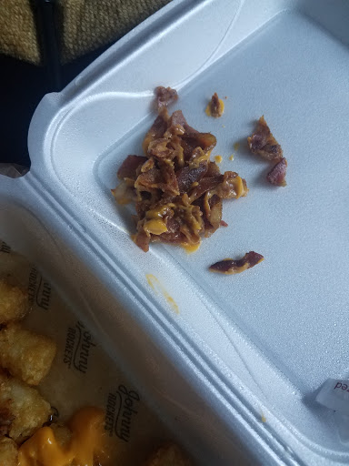 Burger was OK, fries were re-cooked, and a waitress never showed to replace old fries. No action or reaction from the manager.