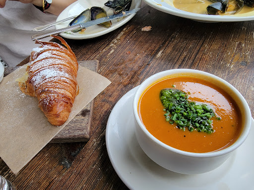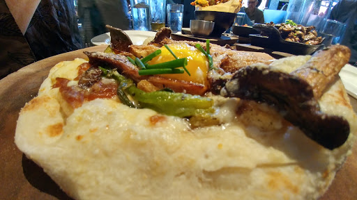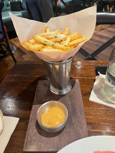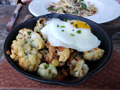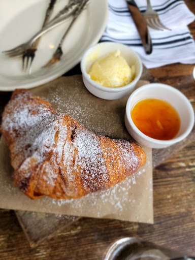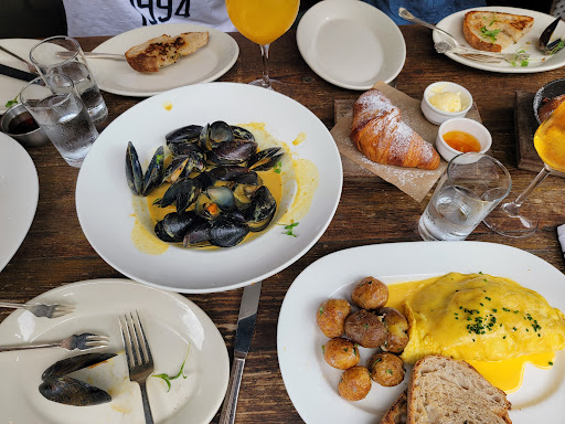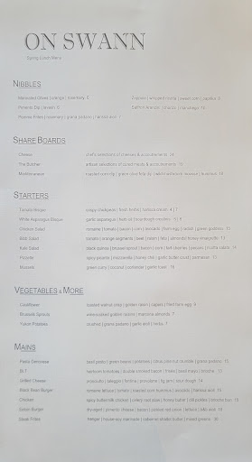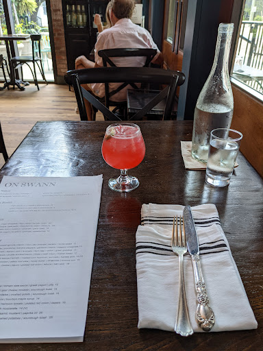 Weve been wanting to eat here for weeks but knew it gets packed and wasnt in Open Table. So to our surprise On Swann started two new things as of typing this. One, theyre on Open Table. Two, theyre serving lunch now (At least on the weekends). The ambience is similar to what a lot of these new modern/rustic places have been looking like. Our waiter was friendly, attentive, and had good recommendations. The Saffron Arancini reminded us of fried mac and cheese ball but with rice. The chicken sandwich was simple but very tasty. The potato chips it came with were very crispy but not oily at all. The Heirloom Salad was fresh and healthy. Heads up on it, its literally all tomatoes just different types. The Blueberry Cobbler was a good mix of sweet and tart and was topped with a vanilla gelato. Finally, my Honey Its Thyme was a refreshing Bourbon based cocktail. Were definitely returning here for a dinner meal.