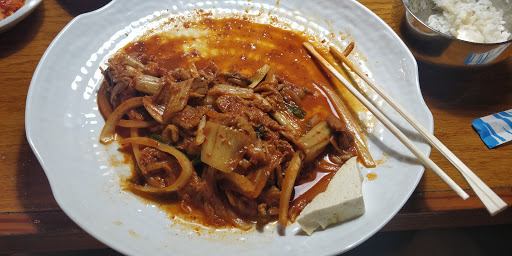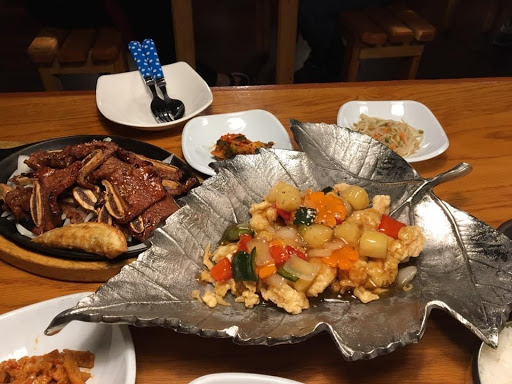 We went there for an early dinner on a weekday. The place was a bit tricky to find as the building is a bit in the back of the main road. We were the only customers there and the server was quick and efficient. I thought the chicken bul go gi was different than a any Korean restaurant that weve ever been to; it comes with carrott (as well as onion) and a pretty thick spicy sauce, but it was good. The Kal Bi was excellent, but the seafood pancake is just average. I thought the portion was pretty generous, which is a big plus. Overall, this is a good family-owned Korean restaurant; Id definitely come here again if I happen to be in the area.