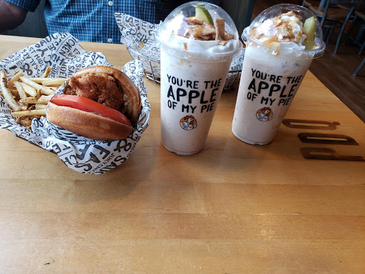 Service is very friendly, I wish they would calm down on the salt though. My fries were too salty that i couldnt eat them and the breading on the chicken tenders was a bit too salty too. But other then that its pretty good. The milkshakes are very good!!