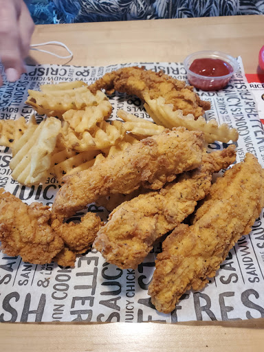 Great staff, selection of sauces and chicken. Good is fresh and employees friendly. I think chicken tenders are a little over priced. You can save a dollar getting 2 kids meals over the 12 count. Lol Its comparable to Chic Fil a, they have a nice have washing station in the middle of the dining area.