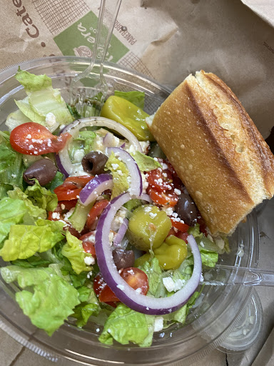 Kind of disappointed as this location is usually great, other than a few times where they mess up my order or dont pay attention to the special instructions section. Ordered a rapid pickup salad, it was on time but the salad was really blah. It was a chicken caesar salad and it just tasted like it was pre-made and sitting in the box for the entire day waiting for someone to order a salad to go. Also, i opted for the whole grain (or whole wheat, not sure) bread as a side for the first time since i usually get the french bread and I really regretted that. On the picture on the website where I selected the whole grain side, it looks like an actual loaf, so I thought itd be like a mini whole grain dinner roll. but no... It was literally 2 slices of whole grain bread! Like sandwich bread, why would I want that as a side?? ... I love panera, just bummed about this experience.