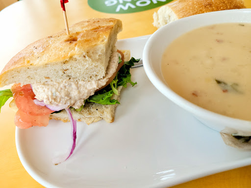 Food is always fresh and tastes good. Soups, salad, sandwiches, smoothies. Great lunch spot & their bagels are phenomenal for breakfast - or anytime! Service at this location is quick and fairly accommodating. Our friend is allergic to milk products & requested the dressing left off his salad for that reason but they slipped up & put I on. He wasnt able to eat it so he took it back to the counter and they gladly made another one. My favorite is their tomato soul and bread. Really inexpensive but yet still filling for me. And tasty!