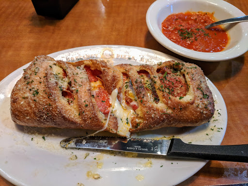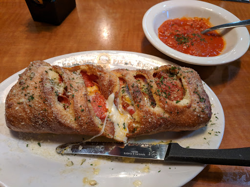 Dont let your kids drink their super weird, gross "kids drinks".... Theyre disgusting and made out of genetically engineered ingredients. Also, who the hell wants to watch multiple screens of Bay News 9 while out eating??? No one... Especially not families... Also there is only one bathroom stall for each sex, thats lame. I got a chicken parmesan sub on chabatta bread (???), it sucked. Also, what kind of Italian place serves fries as a side with pasta? Weird. Our server was nice but overwhelmed because she was the only server there with at least 3 large tables besides ours. I dont blame her. It took forever to get our drinks and food came out at different times. The garlic knots and cheesey bread stick things were good, the sauce was good. The pizza looked good but I havent tried it. It just seemed like a weird place overall, like they skimp on quality so they make more $.