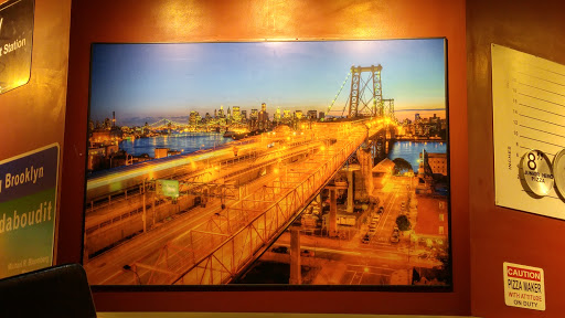 Surprisingly good pizza, especially if you are looking for something different than what you get at a chain restaurant. I can only speak for the plain cheese pizza but it was some of the best Ive found in the area with a crispy thin crust baked in a super hot pizza oven with quality sauce and cheese in proper proportions. I had lunch there before going out for the night and came back for a late night meal since the location was open until midnight. Restaurant is decorated with a random, cheesy collection of signs and items with a New York theme. Service could have been better late at night. I had to wait longer than I thought I should for visits from the server, had to repeat myself a few times, and my glass sat empty on the table for a while even after letting the server know I would want another drink. However, the orders came through correctly and the food was delicious, the beer was cold once it arrived and all of it was priced fairly for a spot downtown. I would go out of my way to get this pizza again, just maybe to-go next time.