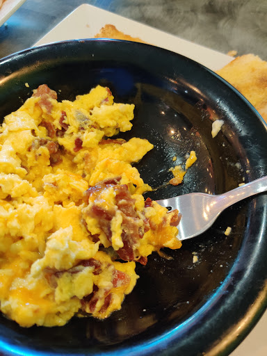 Service was fair. It was a bit busy when I came in. I ordered breakfast and the food portion was massive and I loved it. The food was good nothing to brag about but it was good (chorizo was really good). The server had nice hair, but it only tasted average (hair in my hashbrown). The bathroom was disgusting. The floors looked wet and sticky around the toilet and the rim of the toilet seat and bowl was caked with dry urine. I ordered my food up front and then sat. The girl at the front forgot my water and the server forgot my OJ. I probably wouldnt eat here again but did enjoy the food. Id actually give this place a 1.5 but thats not an option.