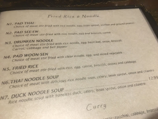 Been coming here almost 10 years. Very friendly staff and excellent Thai. Ive had everything on the menu over the years and there is not a dish that isnt wonderful. Its quiet and cozy and their service is so quick you can grab a bite in a hurry or settle in for an evening of drinks, food and friends.