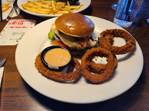 Passing through and we settled in bar side to see if we could catch the Ohio/Michigan game. The staff was super accommodating while we enjoyed a burger and beer and watched the game while accessing wifi. Great place to get off the road, catch up with communications and enjoy the game without being rushed. Havent been to a TGI Fridays in years, and after this lovely afternoon, we will try this again near home. PS. the Jack Daniels burger and sweet potato fries were perfecto!