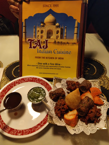 I went to taj in the everning as I was craving for some indian food. The atmosphere was appropriate with good decor n some nice indian music in the background. That was the only good thing about this place. We ordered some appetizers n they gave use one samosa to share btw two people when we asked for a second one they delayed bringing it for about 30 min n they charged us extra $3.96 for the samosa. We ordered a goat curry n a lamb rogan josh this two meals tasted exactly the same, same meat n same source, the meat was served so spairingly we were given one portion of rice to share n that was not enough. The glasses used to serve water were greasy n had lipstick staines. The waiters were in such as hurry they were talking to use while walking away before u even finish your sentence. The only time they showed attention was when they brought the bill. I have had buffet lunch here in the past n it was good, I was abit dissapointed with dinner. I hope that if they could improve on somethings they have the potential of being a good indian reastaurant.