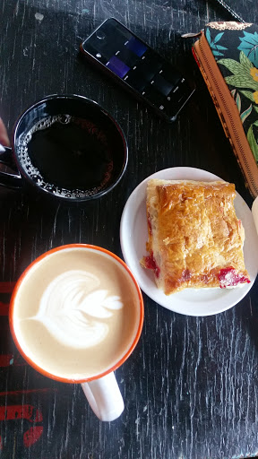 This is one unique place serving up some great coffee, teas and pastries all alongside a clothing store highlighting quality jeans and tops. Very different space and atmosphere. You can stop in for a relaxing cup of coffee or tea and do some leisure shopping at you own pace or sit and enjoy a break. There is nothing like it in Ybor or Tampa. The interior is well decorated and as soon as you enter the establishment you feel welcomed by the inviting atmosphere and set up of the floor space. Its not crowded and has a nice cozy feel. I ordered the 16 ounce cafe con leche. Wow, no kidding one of the best tasting I have ever had and have had a lot of cafe con leche in my time. Only issue is that it had a lot of foam (therefore I think it may have really been 12 oz of actual coffee) and it could have been hotter. But I can look past all that since it tasted so good. My wife had the Florida Orange Blossom iced tea and that too was tasty. Service was friendly, courteous and prompt. We had a great experience here. Its worth the trip to venture down to the East side of the 7th Avenue strip. **TIP/NOTE** Unfortunately, they do NOT serve decaf!