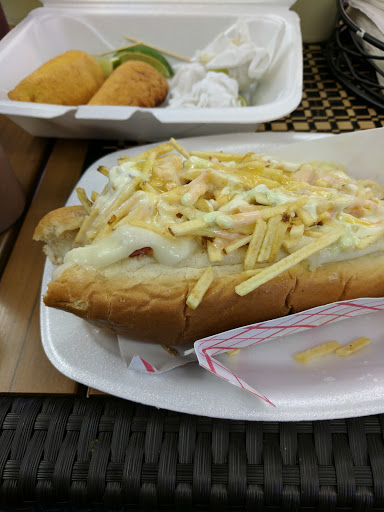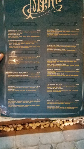 I have been here a several times (once every 2 weeks or so). Usually ordered the Hamburguer, which I think it is delicious and good price. Have tried the empanadas (not good). Stop ordering the hot dogs which are delicious but a bit expensive for what it really is. Stop ordering the picada because it was also a bit expensive and the ingredientes were not great quality (the beef tastes horrible). About 2 weeks ago we ordered 2 hamburgers to go and in one of the there was rotten meat. We threw the piece away and did not give it much thought. Last night we tried again, we ordered the picada regardless the price. You will understand that my husband did not want to order the hamburger again because of the bad experience two weeks ago. Ok, picked up the food, left, ate... there are some things that I do not eat from the picada that my husband eats (blood sausage, Colombian sausage, and the hot dog). I just had the pork skin and the beef (which was horrible in texture and flavor). Well, he got really sick last night with stomach problems. Apparently this people is not handeling their meats well and that is causing the decline on the quality of the food. Like I said, we have been there many times... and we have been noticing that something is not right, bad food and high prices ???