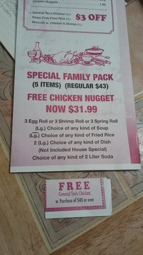 We always order from This specific China Express. Their take out is the best around and always a pleasure to be greeted by the little ones up who we have watched grow over the years!! Also From Mom & Dad who are always smiling and friendly as can be! Thank You for years of great food fast and most friendly service 10 stars!!! You guys are the best!