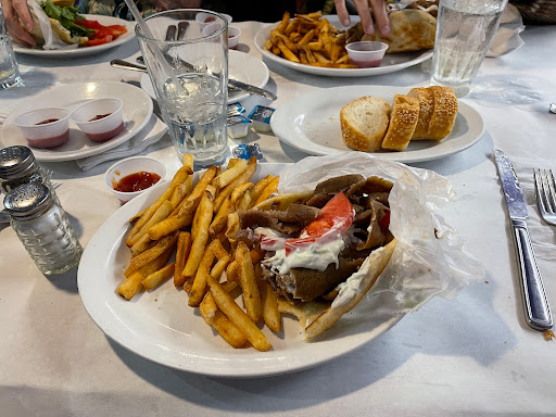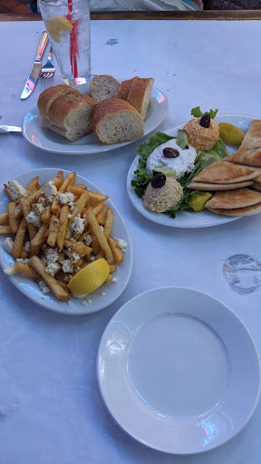 This is a huge greek restaurant with unique decor and a huge bakery attached. Youll dine under sky-painted ceilings while servers light cheese on fire and yell OPA! The menu is huge and sports traditional and local fare. The real shining star is the fresh fish. You can go big and order an entire snapper (and I mean head and all) or you can opt for a simple gyro. The desserts are phenomenal. Service is fast and servers here are professional servers with professional attitudes and attention to detail. They have a nice selection of Greek beers as well. It gets very busy during the weekends. You wont be disappointed, unless you want cheap eats. Prices arent too bad, but expect about 20 dollars for an entree. Two people ordering an appetizer, fish entrees, dessert, greek coffee, and greek beer came out to $100 bucks. Thats good pricing for the money, especially since it is actually fresh, local seafood, as it should be. Its right across from the sponge docks and dolphin tours. Theres gated, complimentary parking about a block southeast from the restaurant if its busy but you can find parking behind the place or on the street as well.