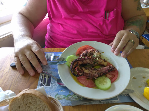 We ate here thinking it would be good considering the busy atmosphere and close proximity to the water. But we were very wrong. Firstly, the waitresses are very rude. You feel very rushed to get in and out of their way. Secondly, it is very crammed inside the restaurant. There are lots of flies and the bathrooms were dirty. However, their appetizer bread was good, but that was all. My meal was mushy and cold. My husbands meal (calamari) was just as bad, but consisted of full squids (heads and tentacles and all) in a unappetizing soup. It was so terrible that we didnt finish our plates and left still hungry. I would highly recommend not going to this place. There are a hundred other Greek restaurants down the road for half the cost.