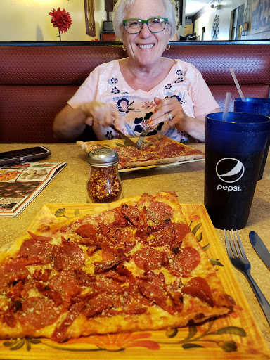 Antipasta salad was plentiful, tasty and very reasonably priced. We went here for the pizza and was very disapointed! Eaten here before and pizza was pretty good. Service never is pleasant. Slow on food and refills even when not busy. The pizza was overcooked, burned on one half, large air pockets with no cheese, lacked flavor, dry and cheese was not spread evenly or enough. Why was it cut into 16 slices as if we were at chuckycheez for kids, what happened to the 8 slice pie so we can fold it like a real NY pizza they boast about. Waitress ignored the burnt leftover pizza and never asked if we enjoyed our food, she assumed we did although we left 1/3 of the pie and thats because we were hurgry. Plum tomatoes is inconsistent at best. Should have returned the pizza and had them cook it correctly and sliced properly. Will not return here.