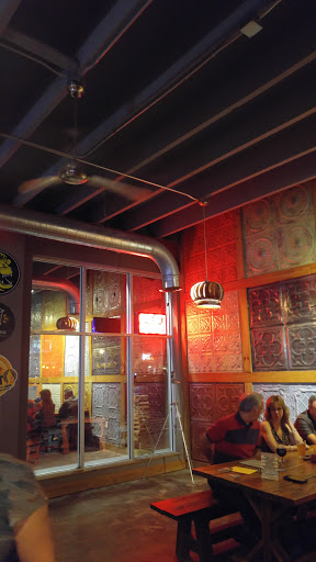 Great Place for Craft Beer, with 30 taps and friendly and knowledgeable owners. The atmosphere is warm and inviting with a rustic/industrial vibe. They are not a restaurant, aside from some prepackaged snacks like gourmet chips they dont serve food, but bringing in outside food, or ordering delivery is allowed. Nice for hanging out with friends you actually want to talk to, they have good music playing at a reasonable volume, built in usb outlets in the bar front for phone charging, and board games.