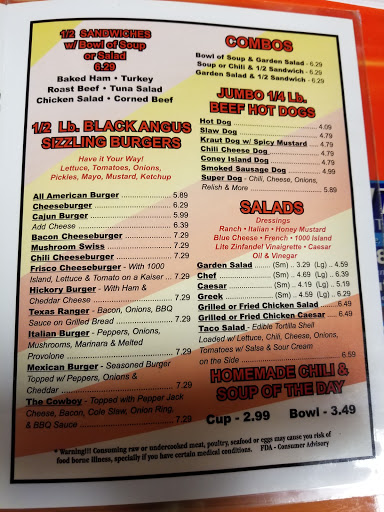 The cook Bruce is a very nice man. Willing to help out people in need. The food is good too.