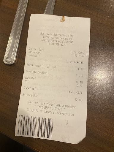 Tonight this place was slammed busy, server was bouncing around like a bobble head and service was struggling. Manager on duty jumped in to help make sure everyone and everything was kept to Bob Evans standards. Very impressed by her willingness to help her team in a pinch. Food was excellent and came out in a reasonable amount of time given the number of tables that had patrons..