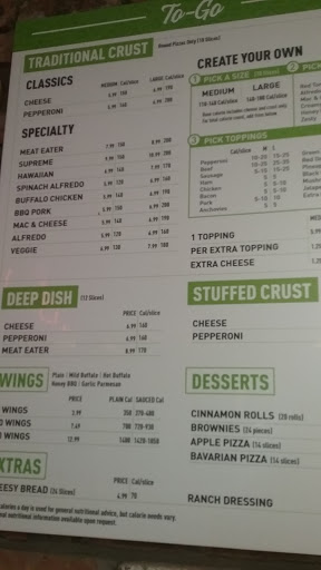 All the pizza was fresh! They offered stuffed crust pizza, thin crust pizza, bread, alrfredo, spaghetti, soup, salad and 4 different types of dessert. It was all DELICIOUS! The gentleman up front was very welcoming and made us feel great about asking for anything we might need. Affordable and fresh buffet!