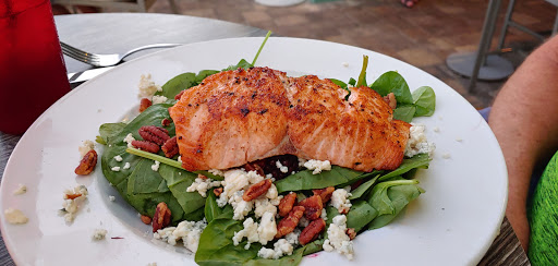 Went twice in 1 week. First visit was outdoors with a 45 minute wait. Got over 20+ bites by no see ums and mosquitoes while outside and got attacked by 4-5 house flies while the 5 of us were eating outside. We asked the waitress if we could have the outdoor fans be moved so we could benefit from the airflow, but the poor waitress was scolded for moving the fan earlier. The grouper cheeks and queso appetizer as well as the group Reuben and sandwiches were delicious. Second dinner visit, our waiter was very absent and unattentive, the shrimp pasta dish didnt have many shrimp, but the cheeseburger and beer was delicious.