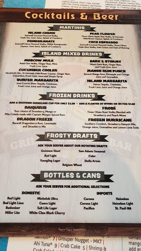 Went here for the first time over the weekend. We were reluctantly on our way to Billys hoping our experience there would be better than the last. We saw the Island Grille on our way and decided to try that instead. We were seated outside. There was a one man band playing. A bit loud for us, as we like to have conversation without yelling. The waitress was very good, we never had to wait for her. Service and food all prompt. The food was decent. Portions were large. My only complaint was the Oysters Rockefeller plate. I bit into one and it was like the oyster shell was ground up and put in the spinach. I had to spit it out. Also they had a strange flavor to them. Unlike all the oysters rockefeller I have had at a million other places. The peel and eat shrimp was really good! I would go back again.