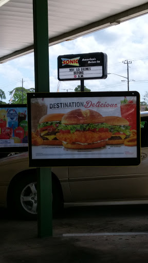 This sonic always has a wait in the drove thru. They try to alleviate the problem by delivering the orders for the people in line out to them. The problem with this is that you may get ready to leave and then the person in front of you pulls out as well. It is a potential accident situation.