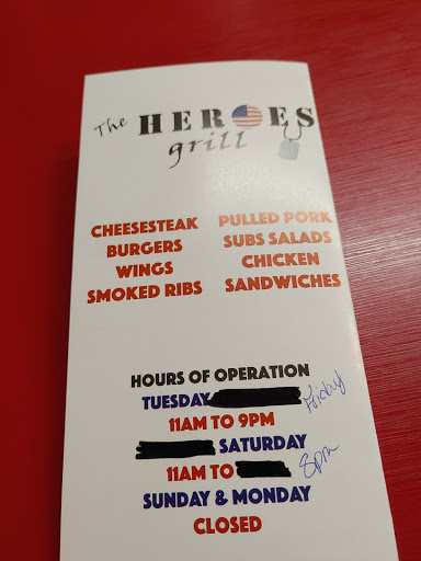 The Heroes Grill provides not just a meal, but a camaraderie between our nations military heroes and the people they protect. The decor is proudly made up of American military badges, etc. The food cannot be outdone, and the friendly atmosphere is inviting. Kept very clean. Highly recommend.