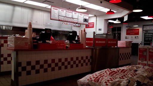 First, its Five Guys... If youve never tried Five Guys Burgers and Fries and milkshakes you dont know what youre missing. No frozen burger patties or fries here. They have fresh, skin on fries (perfect, like the old great steak escape fries, natural cut) cut from real live potatoes. They have big fat juicy burgers (exactly how you like them dressed, and they even offer lettuce wrapped burgers for those looking for gluten free or low cab options!) And their milkshakes... Well, Ive always been distracted from life by how delicious their burgers and fries are, but their Ghirardelli chocolate milkshake made me forget about the burgers for a minute... In fact I think I forgot my own name, it was SO GOOD!! I always enjoy the cleanliness and friendly service at this Five Guys location, too. What are you waiting for?? Go, youll love it!!