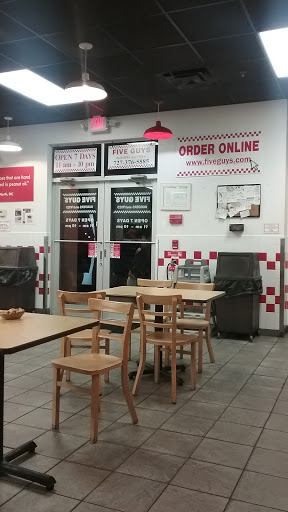 We usually love five guys, but found this location to not be as good as the rest. We missed the greasy burger we are accustomed to, since theirs was over cooked and bone dry. And the wait was like 15 minutes with only one person in front of us.