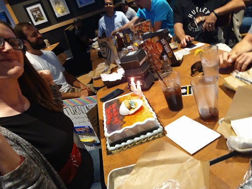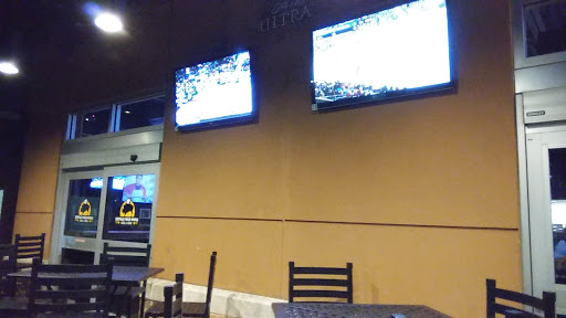We stopped by there for a quick lunch snack. I really like the place. It is a wide open space with plenty of room around your tables. Large bar area, which I did not visit further this time. We just sat down in the main food area. Service girl showed up fast and we were asked what we want to drink. She came back to fast for me to order, but patiently waited another few minutes. We had the Table Gate Sampler ( not sure about the name) and I ordered the Go Hog Wild fries ( which I found was a mistake). the sampler was good. Wings were hot and not fatty. I tried the Caribbean Jerky sauce , which was excellent. The medium hot was not really good. The spinach dip was great and the chips very good. Jalapeno poppers hot and tasty. The two soft pretzels were also very good with the cheese dip. The fries were small and not really hot. But the taste was good. The price was way to high. What I thought to be a 1.99 fries turned out to be a 4.98 fries with the explanation , that it is a regular fires for 2.98 and then loaded. If that was a regular fries portion, good night LOL. I would not order those again. However. I liked the place, the service was ok. Food was good. Next time I try the beer and add the comment if I can. Prices are a little high. The lunch specials were around 9 $ and did not look huge. They have tons of sports channels though, which is nice. I did not see the golf channel, which I am sure they would put on if asked. There is an outside area also. Not a place I would go all the time, but a nice sports bar to stop by once in a while.