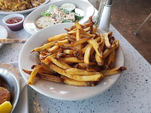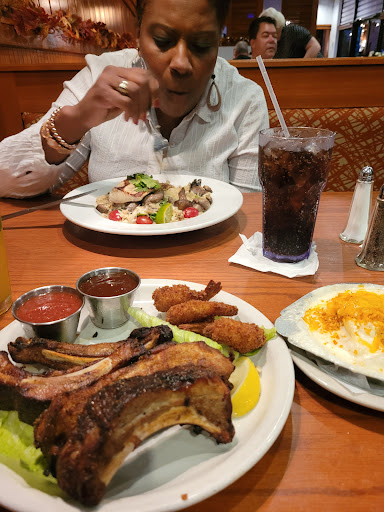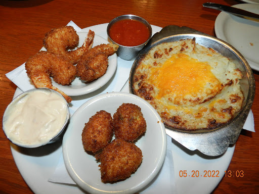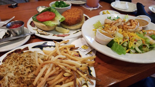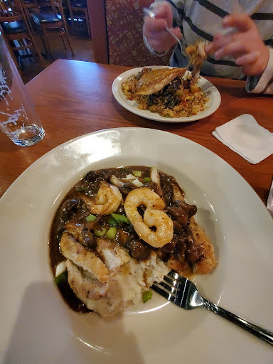 My wife and I went for lunch -- our first time to this restaurant. The ambiance is a bit upscale, with a glowing, sparkly bar, and smooth jazz on the overhead speakers. We were nearly the first customers in the door for the day, so service was quick and attentive. We were seated with warm bread and cold butter almost immediately. Nice touch: the salt shakers hold pink, artisanal salt. My wife had shrimp Florentine, which was delicious. The ingredients were fresh, the sauce perfectly complemented the large, tender shrimp, and the dish gave her a happily full-but-not-too-full feeling. I ordered a pretty standard fried shrimp "platter" with waffle fries and coleslaw, and it was only okay. It was not platter-sized, it was six shrimp, a cup of slaw and a handful of fries. The slaw was bland, obviously from a bulk-food tub; the waffle fries came from a bag, and the shrimp were unseasoned, nearly flavorless. I made use of the pink salt and cocktail sauce more than I normally would. Verdict: My wife loved it, I did not.