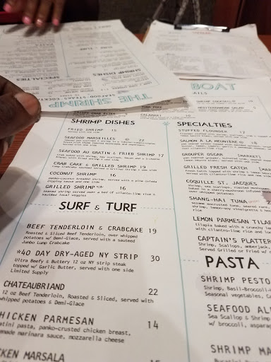 This is one of those hidden GEMS that you love to stumble upon. Ive been here five or six times in the last two years and Ive never been disappointed. You can tell all of the food is made fresh in their kitchen. Their servers are very friendly and attentive, the ambiance is just lovely, despite the name (boat). It feels like a very high class establishment but with a budget that is affordable. Three people with full meals, appetizers, drinks etc can eat here for under a hundred bucks. The food is so good, extremely well prepared, delicious etc. My complements to the Chef for sure. If you want seafood this is the place go in Riverview/Bloomingdale.
