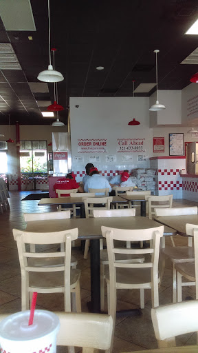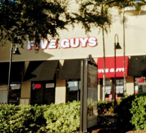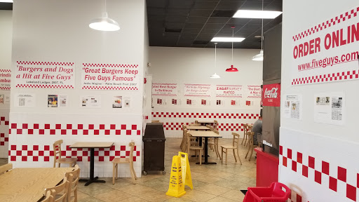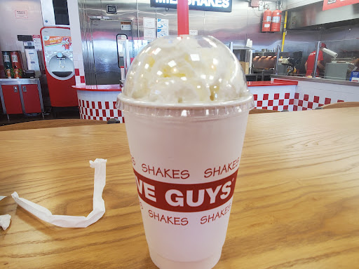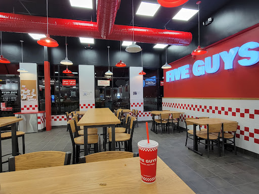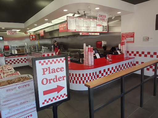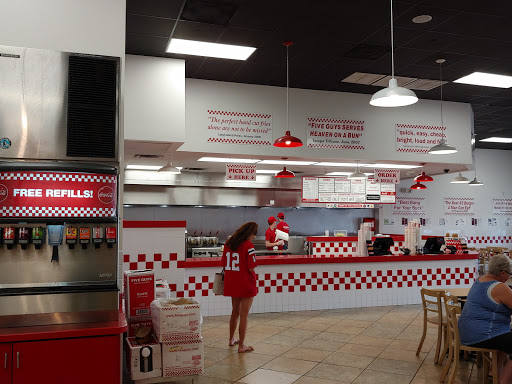 Five Guys here is your typical Five Guys. The food is always good and consistent. I always get the hot dog. Its clean and theres nice outdoor seating.