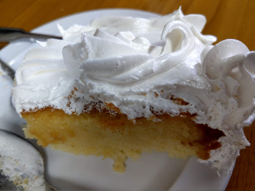 We had tripe and beef stew with rice and beans. It was delicious. Big portions enough to share. The cake was on point.